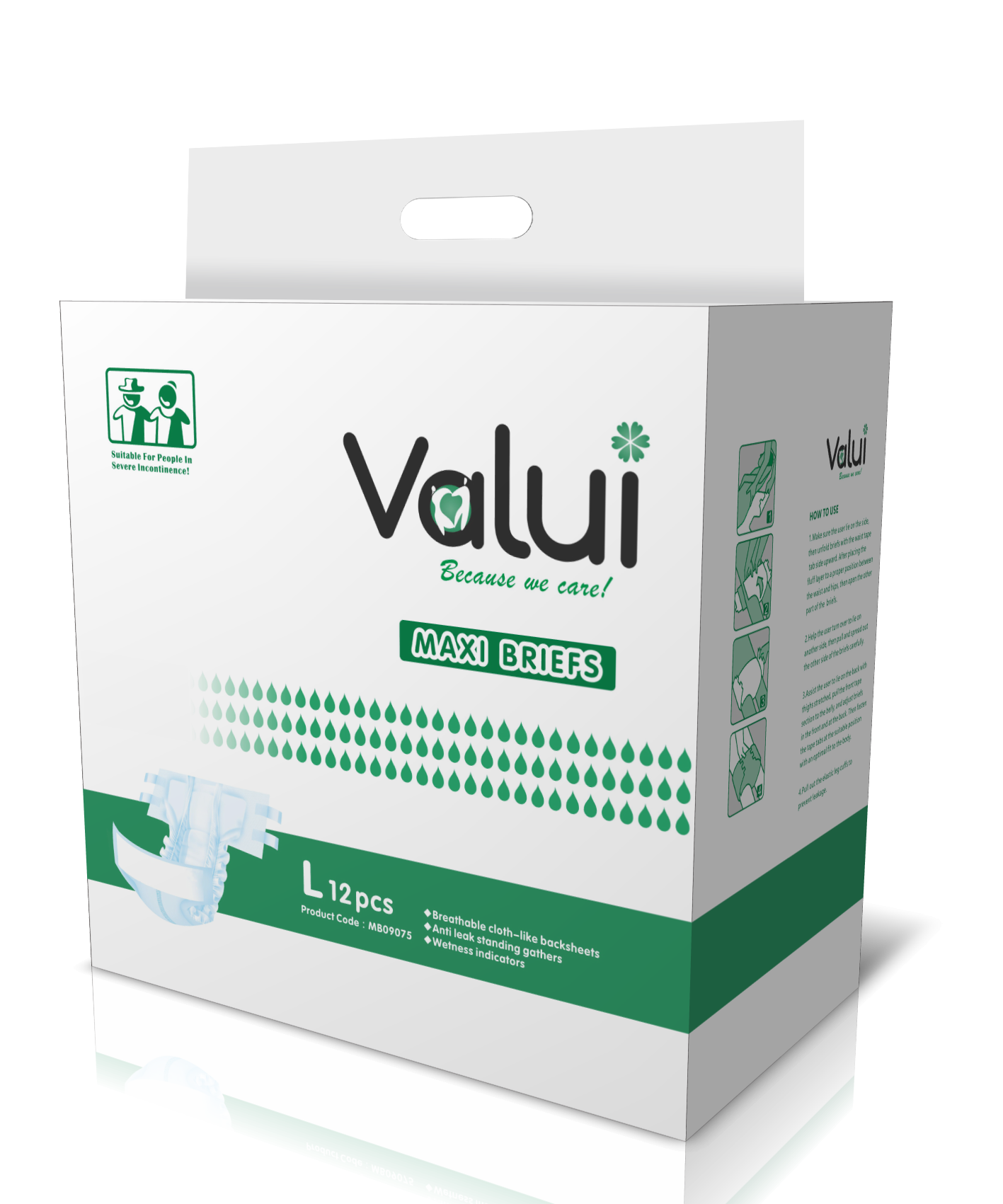 Valui Brand; MB09075(Product Code); All-in-one, nappy like (STYLE); L (SIZE); 82-144cm (WAIST); 48PCS in 4PKT (CTN)