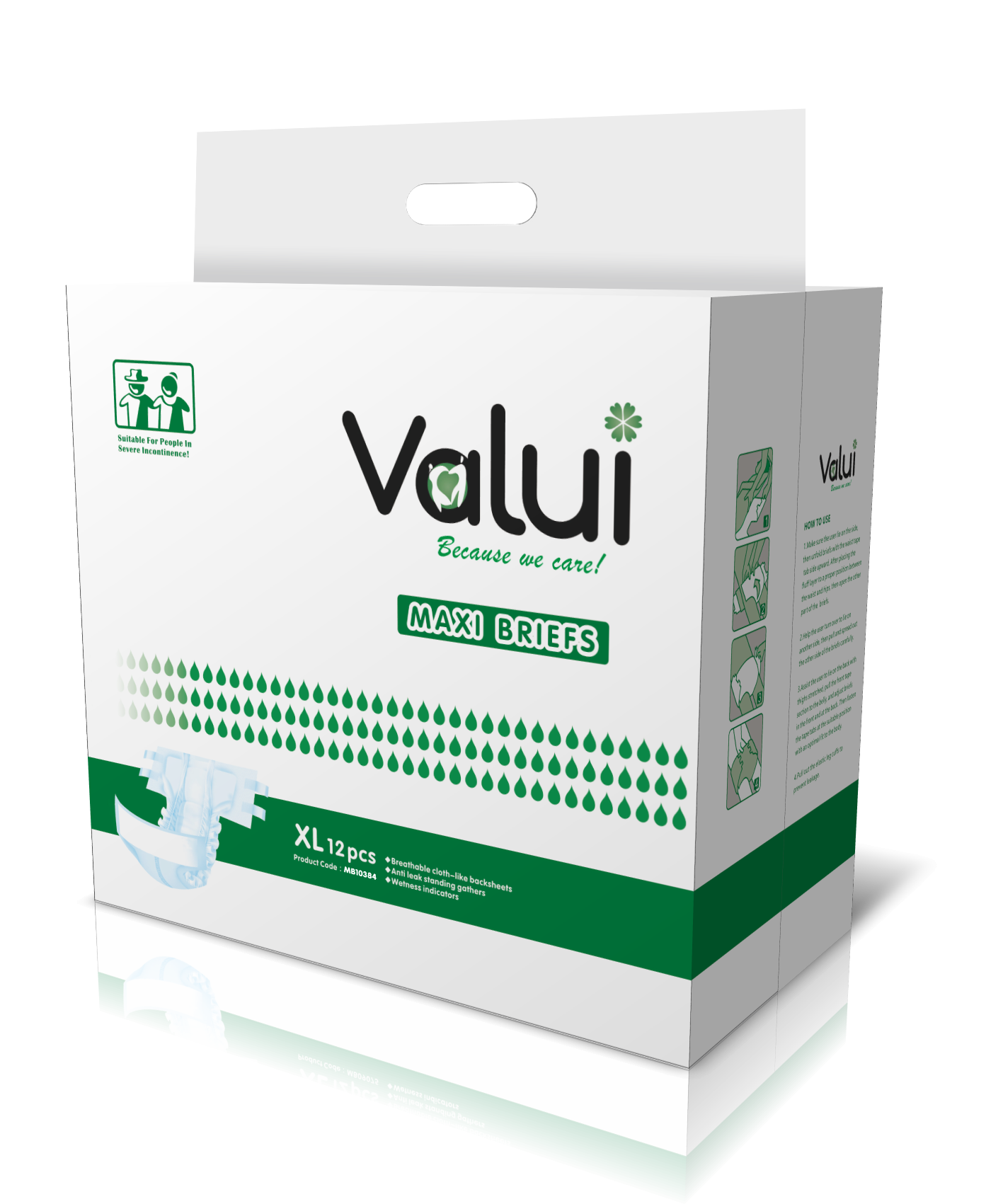 Valui Briefs are an all-in-one and nappy style aids designed to be the most absorbent and cost-effective all-round incontinence solution. To maximise cost-effectiveness, Valui Briefs are available in two categories: Maxi Briefs (higher absorbency) & Plus Briefs
