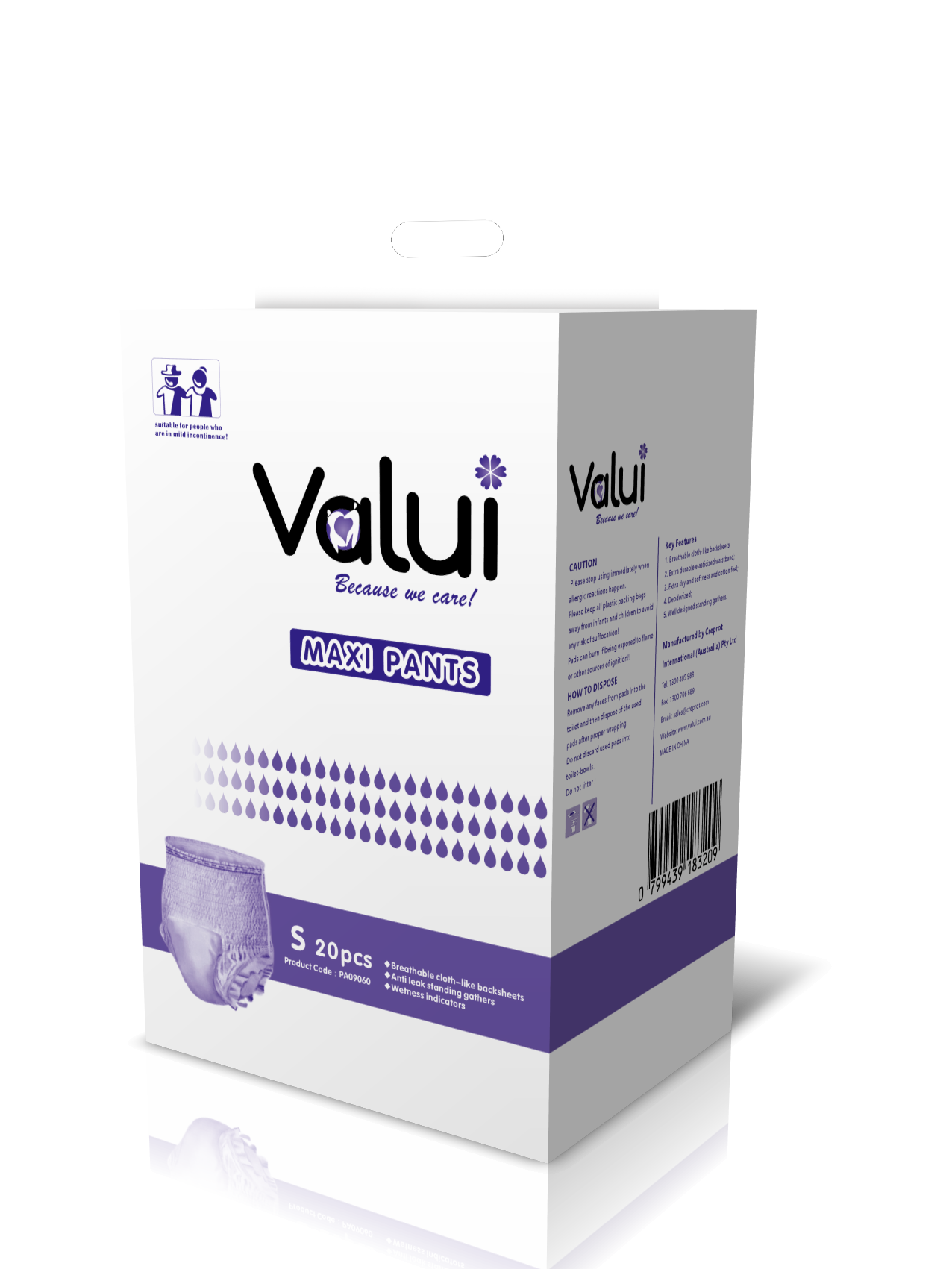 Valui Pants are a pull-up style aid designed to be worn just like normal underwear. To accommodate comfort, Valui Pants are available in two categories: Maxi (higher absorbency) & Plus Pants.